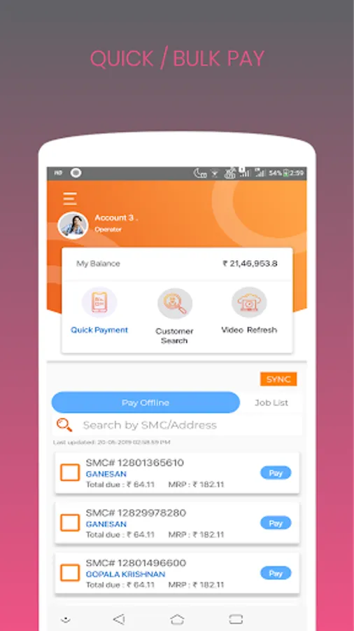 Make Payments for Customer: It helps SCV Operator can make Customer Payment, Base Pack Purchase, Bouquet & ALaCarte Purchase and New Activation.
