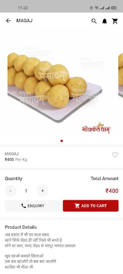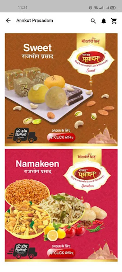 This is one of the leading endeavors of our organization "Shree Swaminarayan Gurukul Rajkot Santhan" that by ordering through mobile application sitting at home, every devotee can take advantage of Sweets and Namkeen offered to Lord Shri Nilkanthvarniji, Shri Radhakrishna Dev, Shri Laxminarayan Dev, Shri Kashtabhanjan Dev etc. at Nilkanthdham Poicha.