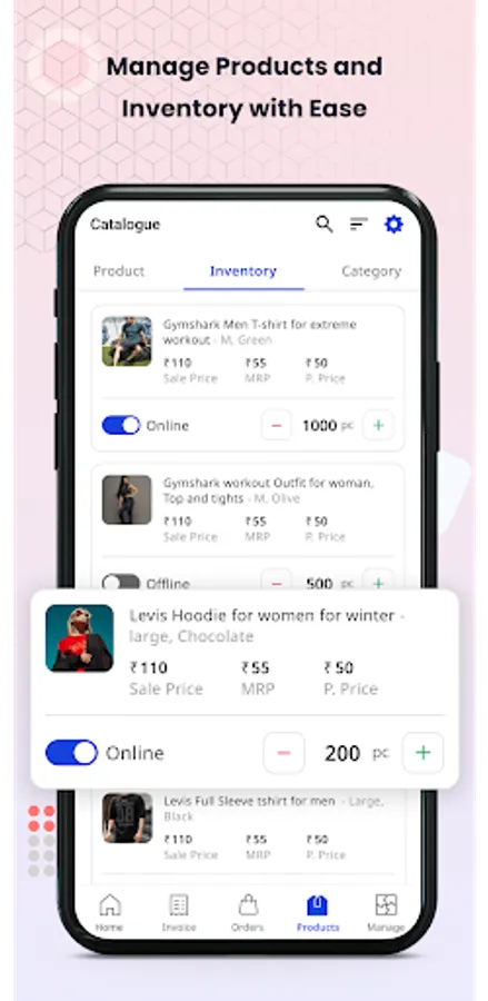 • Product catalog including custom fields like Size, Color, Weight, IMEI etc