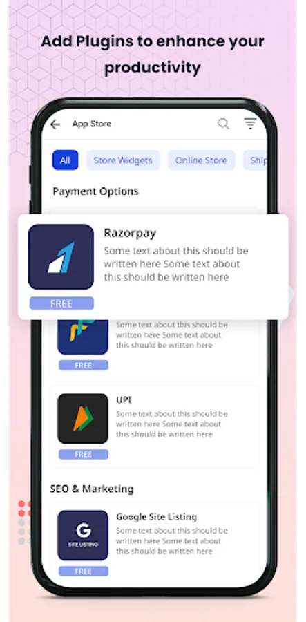 Shoopy helps businesses to go online in a few seconds. Businesses get fully personalised e-commerce store in simple steps. Shoopy online store service can be used by any type of small & medium businesses. Be it selling products or offering services. Shoopy offers seamless integration with Social Media Platforms to share product catalog, invoice and communicate with the customers. Online stores are 100% safe & secure. Shoopy works out of the box.
