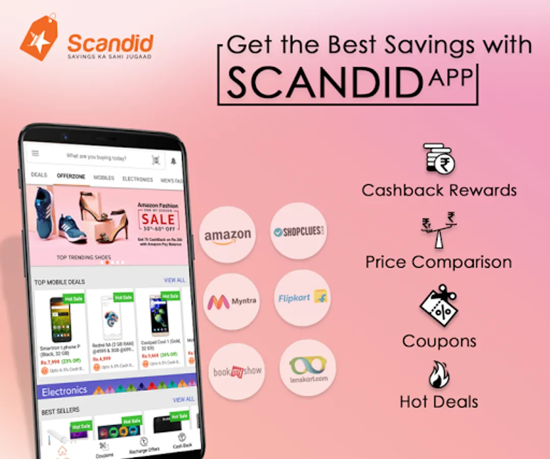 Introducing Scandid Cash Back. Shop from your favorite online stores and earn Cash Back at Scandid app. With Scandid you will earn cash back on top of all offers, deals, coupons and also wallet cash back. Scandid app offers cash back on your favorites stores like Amazon, Flipkart, eBay, Paytmmall, Dominos, Myntra, Jabong, swiggy, Shopclues and even for grocery and cab booking.