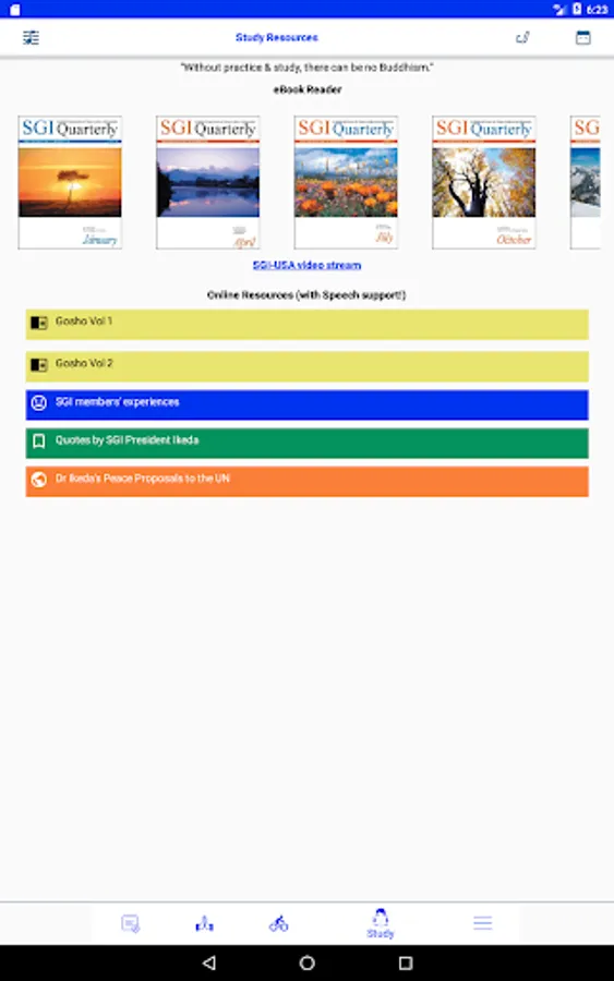 - Inbuilt SGI Quarterly magazine ePubs, Gosho etc reader with Speech!