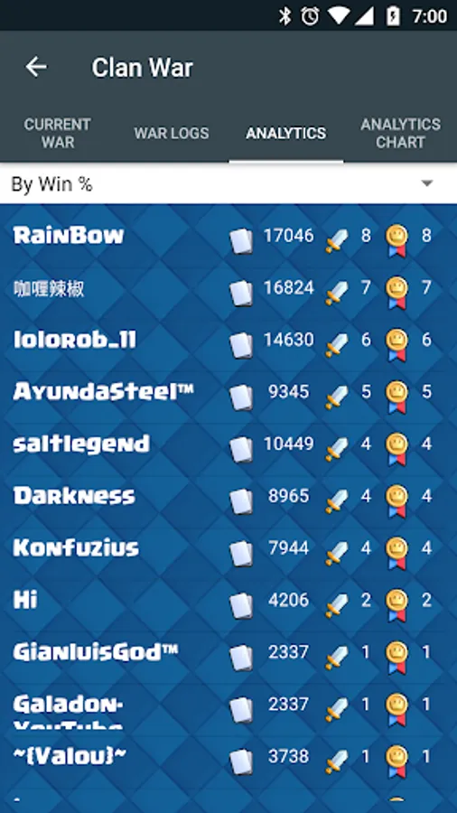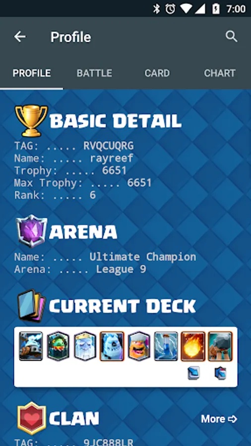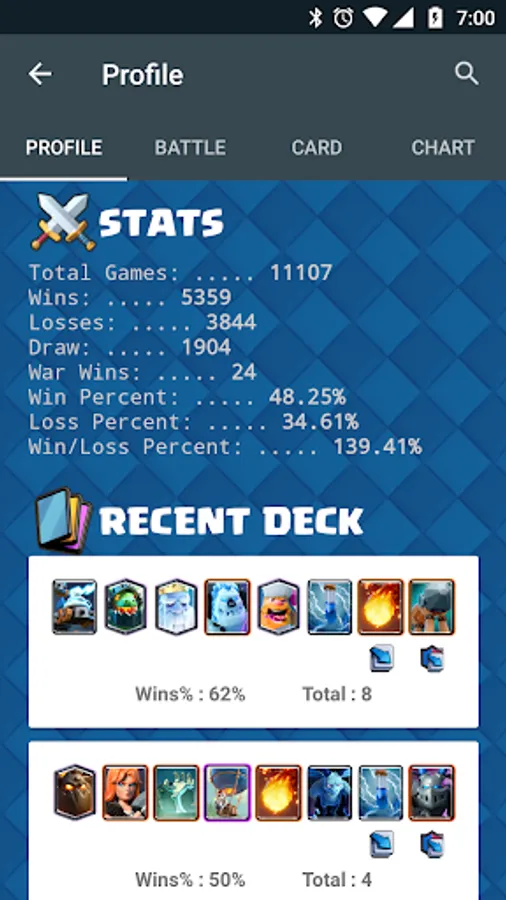 And some stats that are not visible in Clash Royale app too.