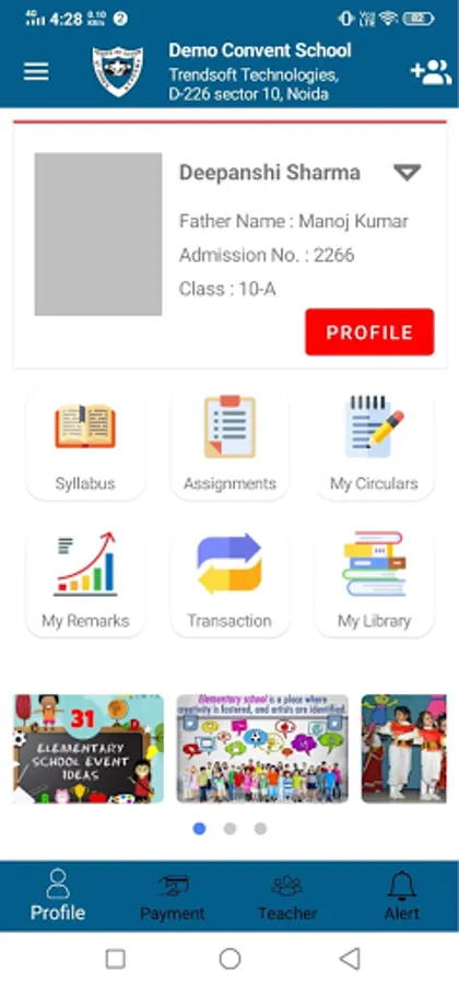 Fee payable, Circulars, Homework, Timetable etc