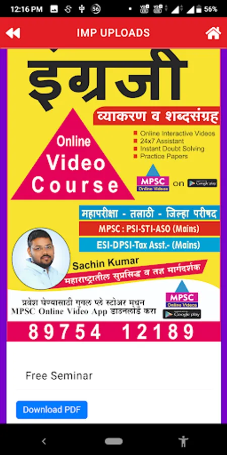 The app provides you better quality education for all competitive exams through outstanding videos of experts, Online Tests by trainers, Extra Ordinary PDF Notes. The English language Expert, Sachin Kumar's Online guidance for all competitive exams has been delivered with this app.