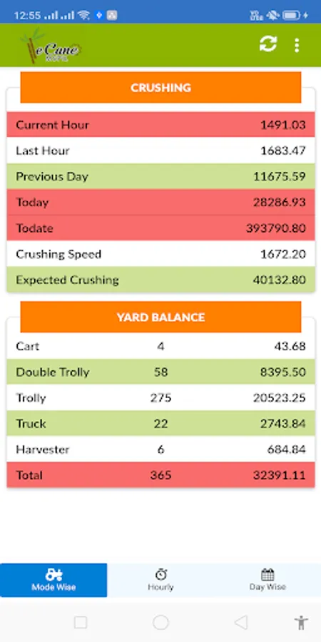 • Expected cane to be arrived and actual cane arrived data can be seen on mobile screen.