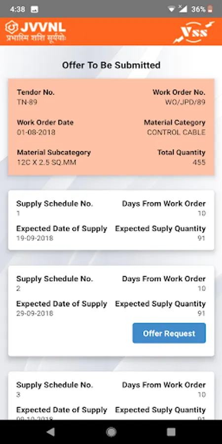 VENDORMITRA provides an intelligent workflow system that enables vendors of JVVNL to offer the material online for Pre-dispatch Inspection. The key feature provides instant nomination of Inspector from the list of empaneled officers.