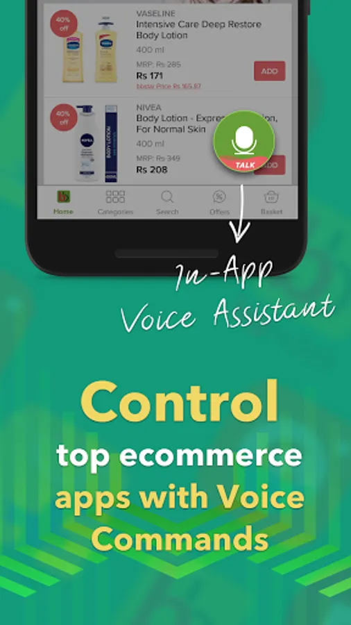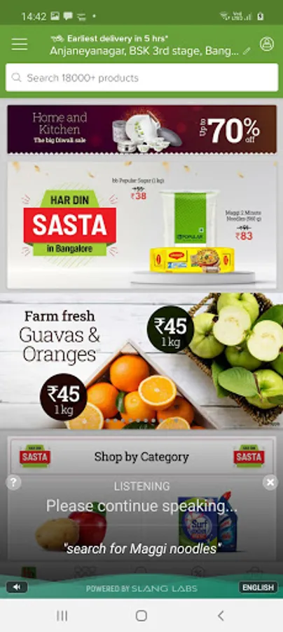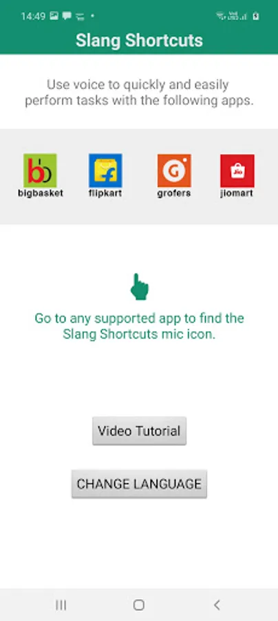 Be it BigBasket, FlipKart, Grofers or JioMart, Slang Shortcuts allows you to talk to your app to get the following things done: