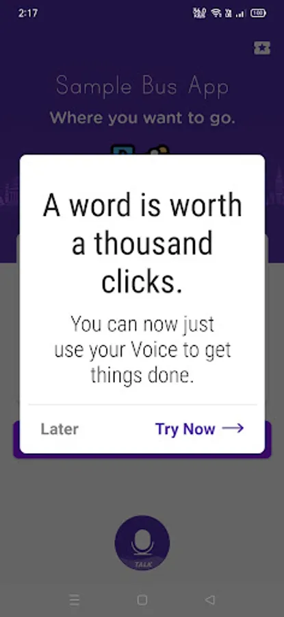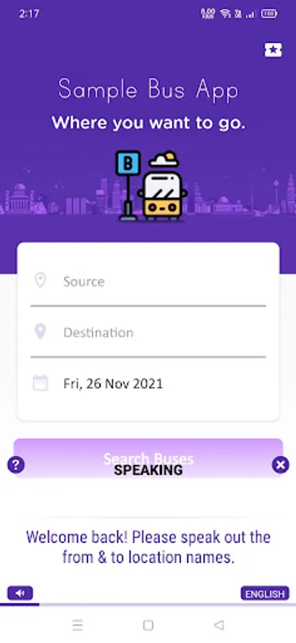 This is a technology demonstrator app that is meant to be consumed by potential and signed-up Slang CONVA platform users (you can sign up at https://slanglabs.in). The app simulates the front-end capabilities of a travel app.