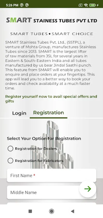 SMART Stainless Tubes Pvt. Ltd – an ISO 9001 certified organization, has launched SMART Saathi app to connect with its Dealers, Retailers & Fabricators. SMART, a part of Mohta Group of Companies, is the largest lifter of stainless steel coils from Jindal Stainless Limited (JSL) in Eastern India and has been the Top Performing MOU Partner of JSL for the last several years.