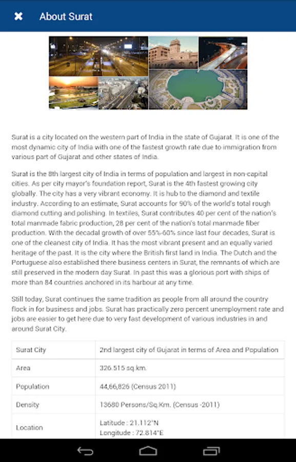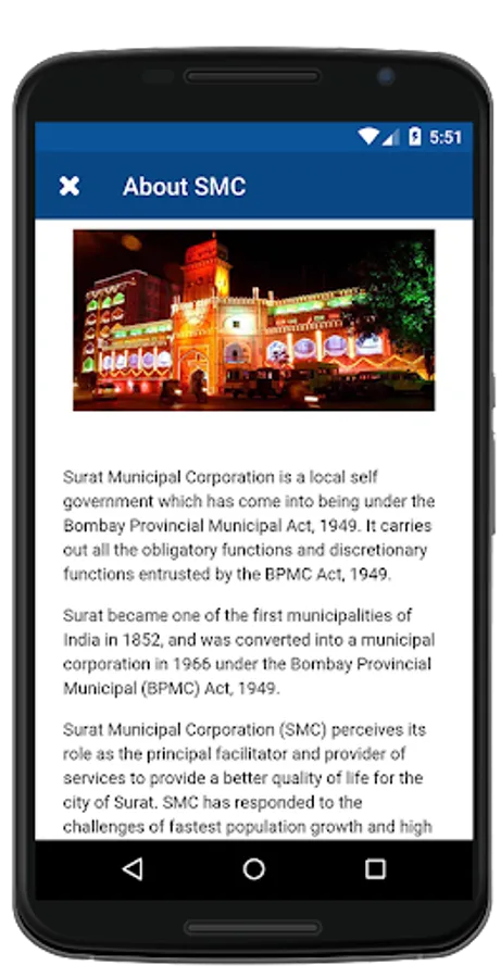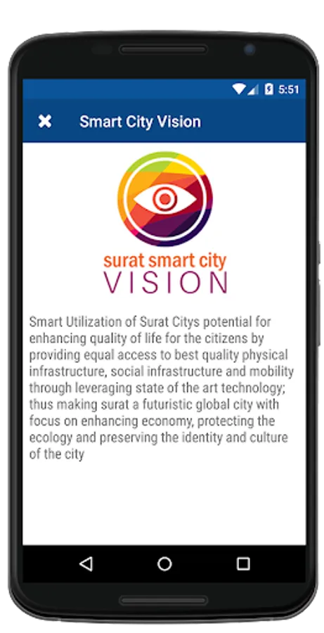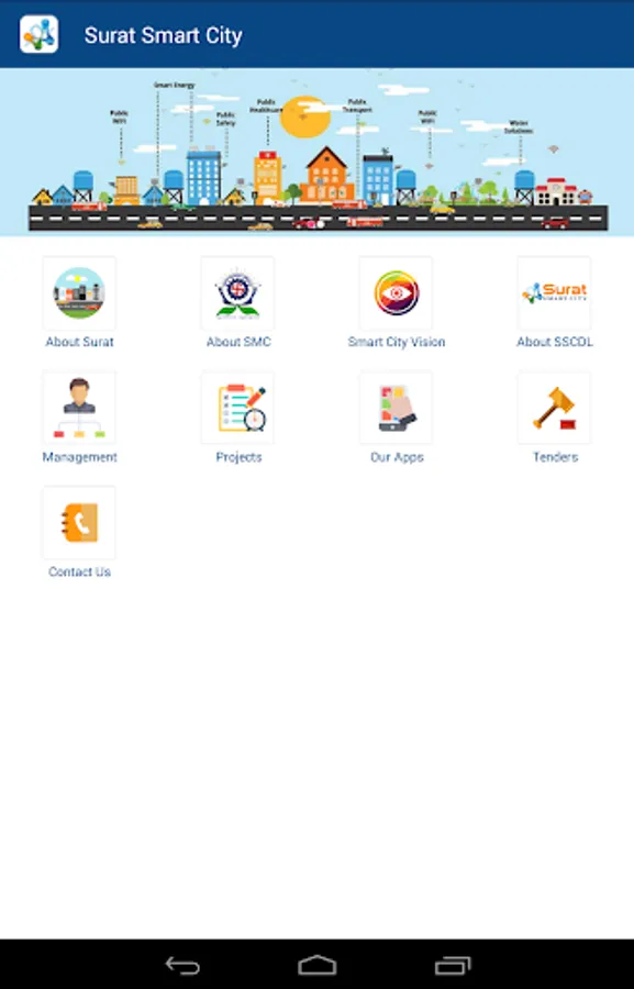 Surat Smart City is an informative android based mobile application developed by Surat Smart City Development Limited, an SPV of Surat Municipal Corporation. This mobile application enables the citizens to stay updated with the latest happenings and project details under the Smart City Mission.