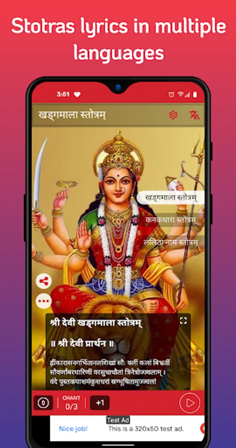 Good and clean Durga Stotram app in multiple India languages has the following feature: