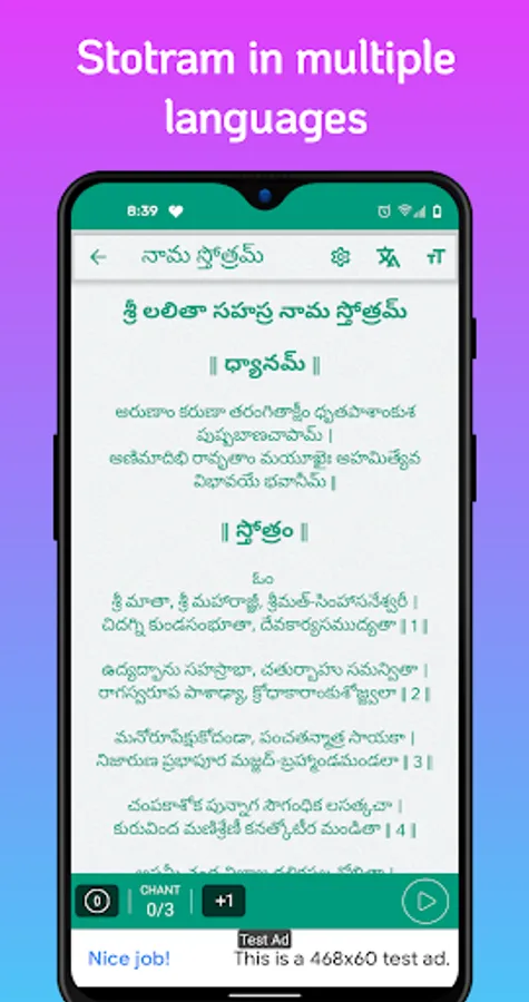Sri Lalitha Sahasra Nama Stotram in multiple languages