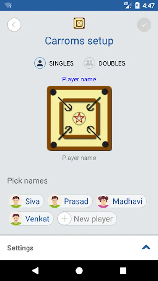 → Player names can be managed so that they can be easily picked while setting up a game.