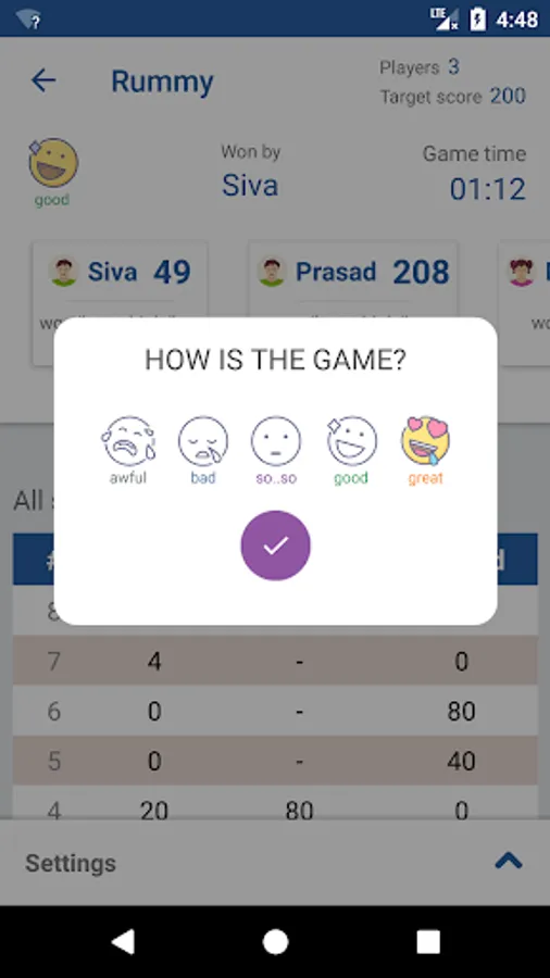 Simple scorekeeper app for Android to set up and manage Rummy, Carrom board, Badminton or Shuttle and Tennis games very easily and accurately. You barely need to enter scores at the end of each round. The app will automatically sort them and shows you the leading score player appropriately. This will greatly remove the use of pen and paper.