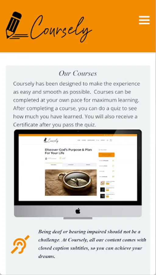 Being deaf or hearing impaired should not be a challenge. At Coursely, all our content comes with closed caption subtitles, so you can achieve your dreams.