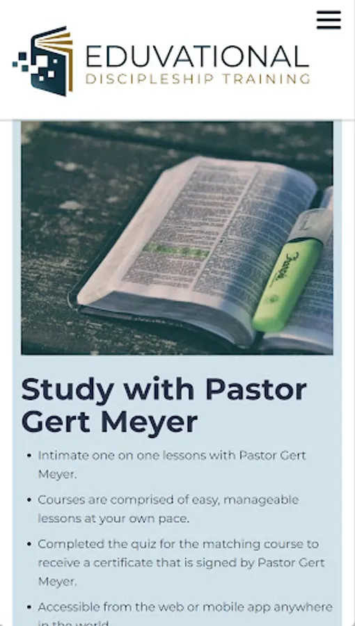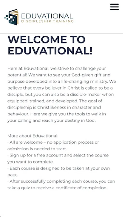 Here at Eduvational, we strive to challenge your potential! We want to see your God-given gift and purpose developed into a life-changing ministry. We believe that every believer in Christ is called to be a disciple, but you can also be a disciple-maker when equipped, trained, and developed. The goal of discipleship is Christlikeness in character and behaviour. Here we give you the tools to walk in your calling and reach your destiny in God.