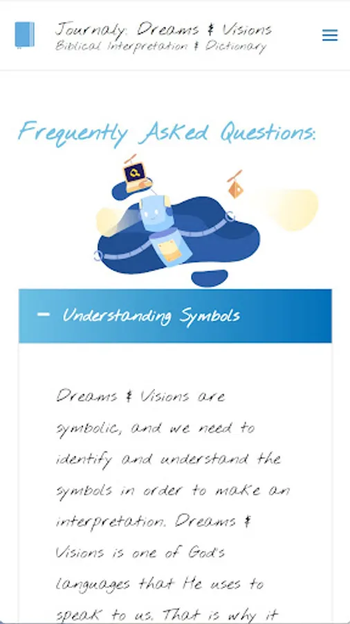 We have created the most comprehensive Dream Dictionary that has ever existed, using the bible as its origins. Our app will analyze your Dream or Vision and list all the symbols found along with their definitions and meanings. Once all the symbols are translated, it is easy to interpret the dream.