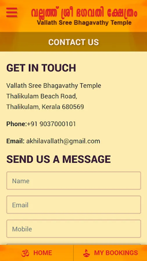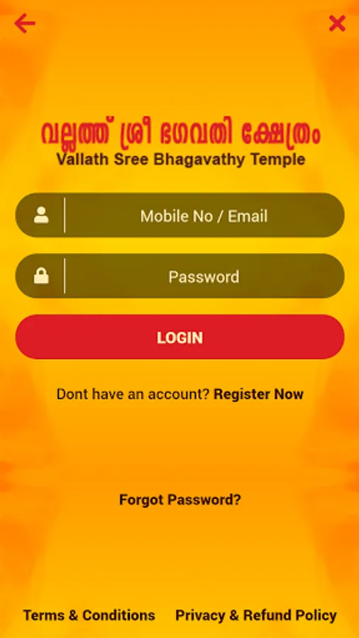 Vallath Temple app provides services to devotees of Vallath Sree Bhagavathy Temple, Thrissur. A Devotee can avail services like bookig Poojas, availing darshan and can be involved in various schemes that are part of Vallath Temple Trust. The App aims to provide devotees with better user experience in availing these Services. Devotee registration with valid e-mail ID/Phone no is a prerequisite for booking of Pooja/Accommodation/Darshanam . Registration OTP will be sent to the registered mobile number for verification & activation. Please complete all this process well in advance to avail online services.