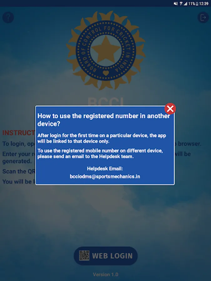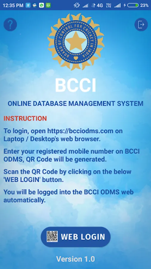 To login, users need to enter their registered mobile number on the BCCI ODMS Portal. A QR Code will be generated. Users need to scan the QR code using the BCCI ODMS app to login.