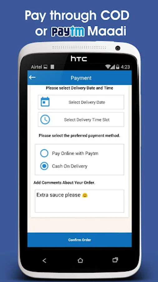 Pay through Cash On Delivery (COD) or Online using paytm with your Debit/Credit cards or Net Banking.