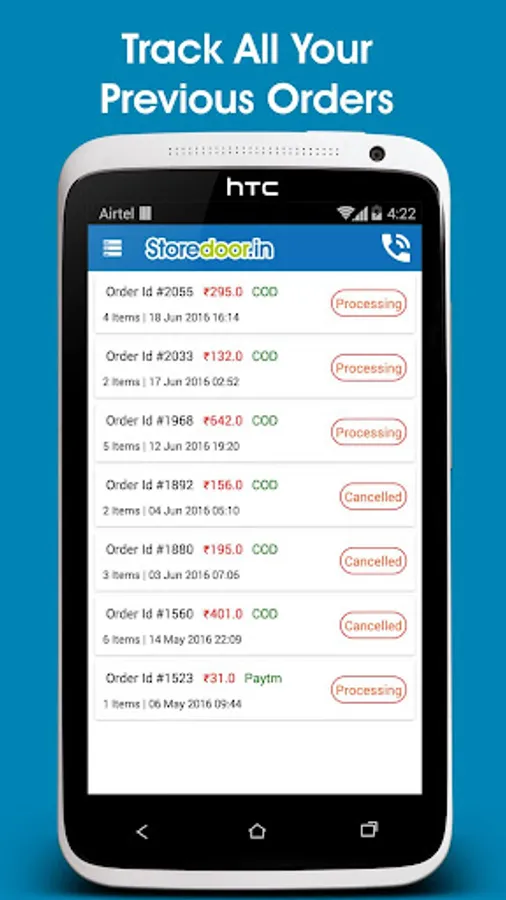 Order online at Storedoor.in Android App or logon to www.storedoor.in on your web browser or call us at 9449772779.