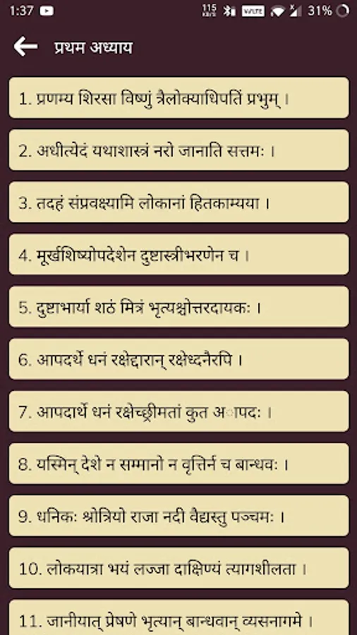 The Neeti-Sutras of Chanakya, which instruct people on how to act and make them aware of various topics relevant to their lives, are included in the Chanakya Niti Hindi Quotes for Life application, which has been created with a modern interface. With the help of this application, you may learn about Chanakya's life's events and discover more about his admirable character and inspirational sayings. This application offers you daily inspiring quotes as well as well-known life quotes, and it contains several chapters in which you can view the quotations chapter by chapter. This app has some of Chanakya Niti's most well-known quotations.