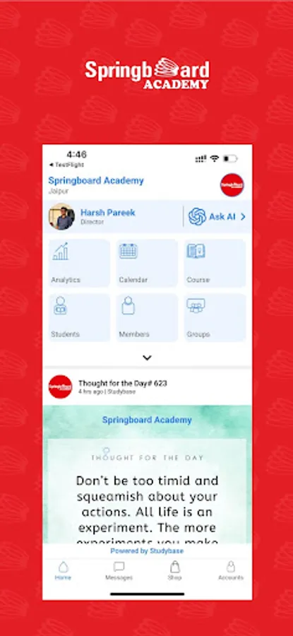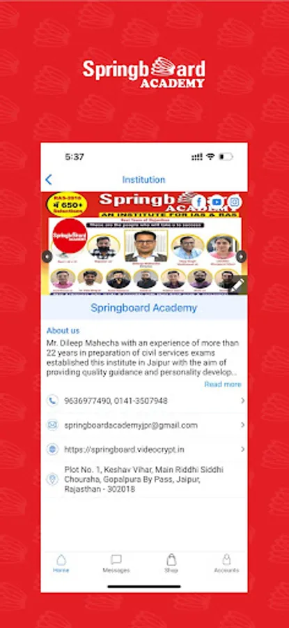 A premier institute dedicated for preparation of civil services examinations at national and state level. It was founded by Mr.Dileep Mahecha in 2006 with a vision to provide quality and comprehensive education to civil service aspirants. Since its foundation the institute has helped hundreds of students to achieve their goal of cracking the civil services examinations. Our highly experienced teachers are the hallmark of our quality and are known for their focussed approach and personalised guidance to students. Say goodbye to paperwork and long queues – with SpringBoard Club App, you can conveniently handle admissions inquiries, make secure fee payments, regular updates and access/download fee receipts effortlessly.