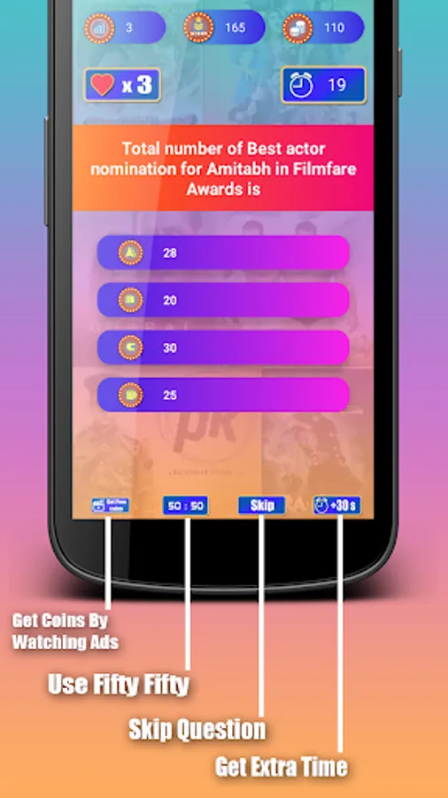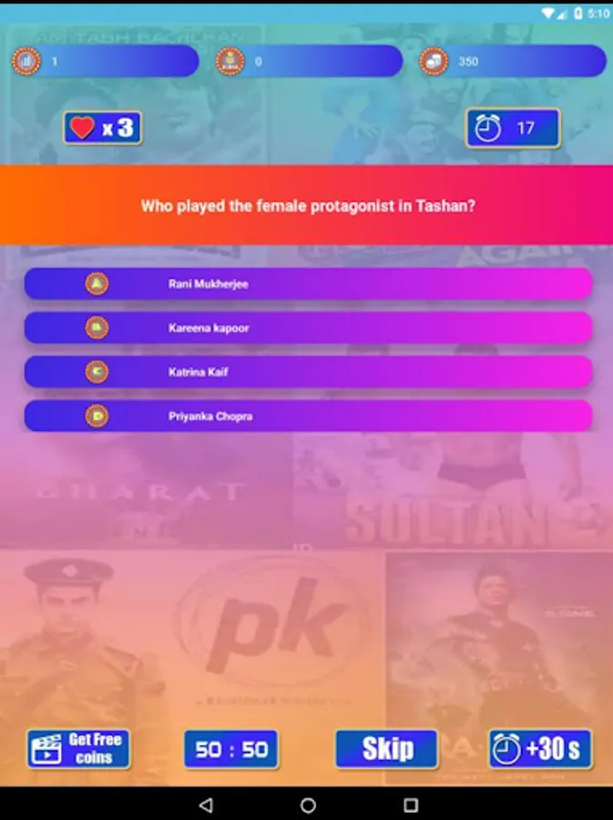 - There are three lifeline that help you in the game which you can avail by using your coins.