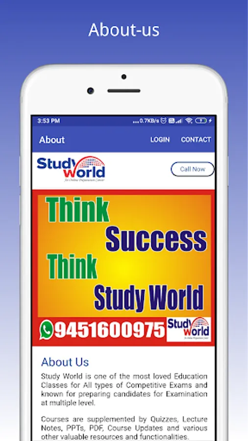 Study World is one of the most loved Education Classes for All types of Competitive Exams and known for preparing candidates for Examination at multiple level.