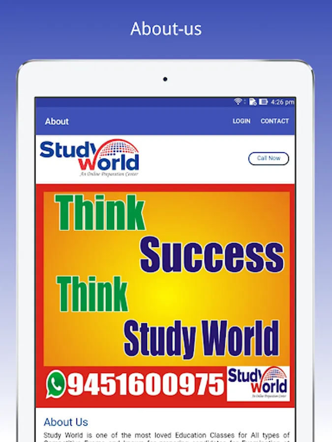 Study World App is a platform for all sort of competitive Examinations Preparation is done.