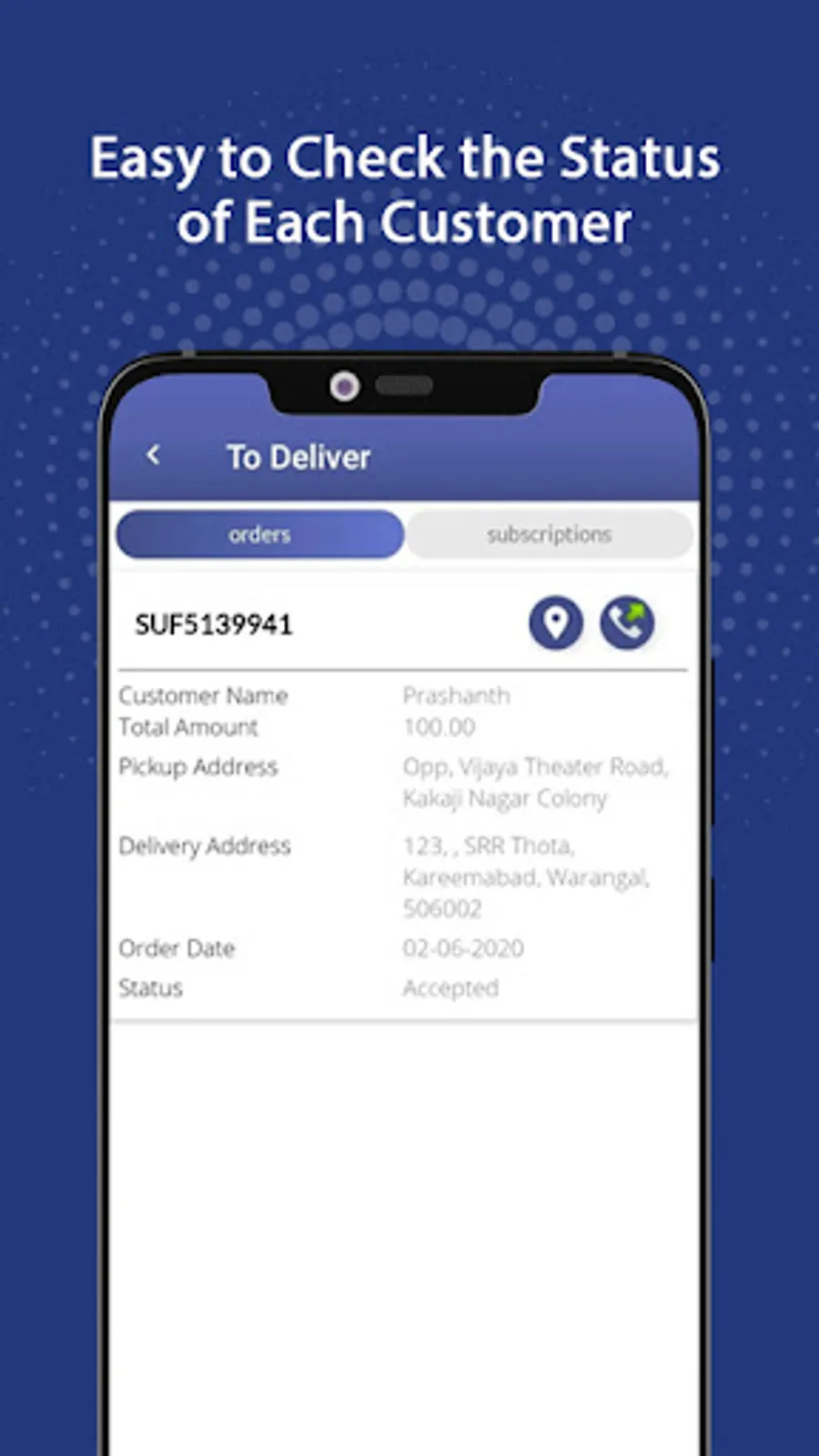 Suffuse delivery partner can be deliver the products, which could be order by customer.