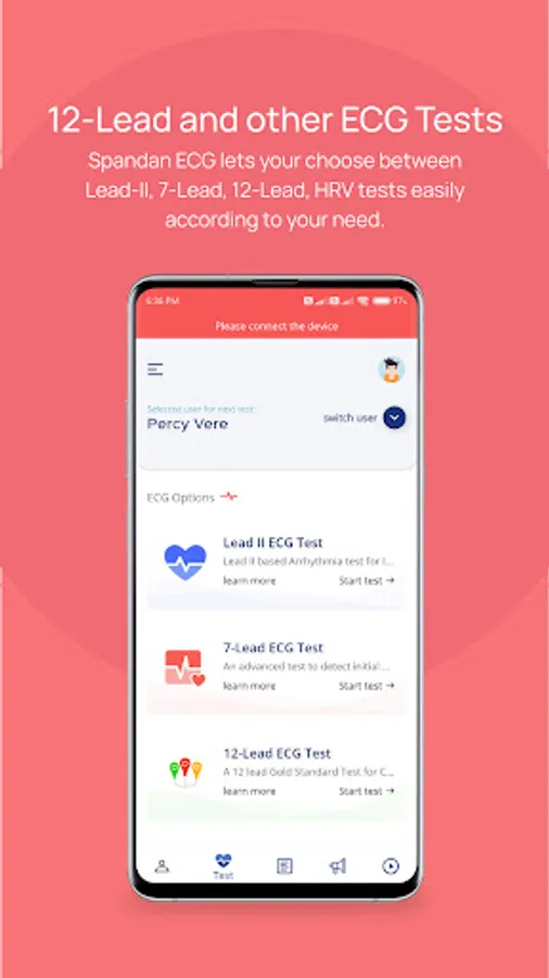Through the android application, you get a live ECG monitor within the reach of your hand at all times for an unlimited duration. Through the Spandan App, you can convert your smartphone into a 24X7 Holter monitor with the Live ECG monitor option and keep a close watch on your heart’s health with much efficiency and clarity.