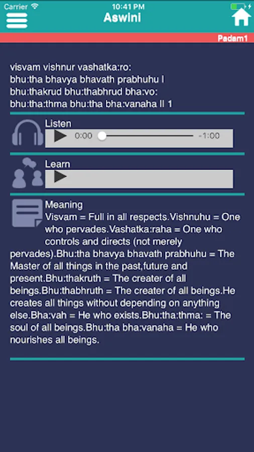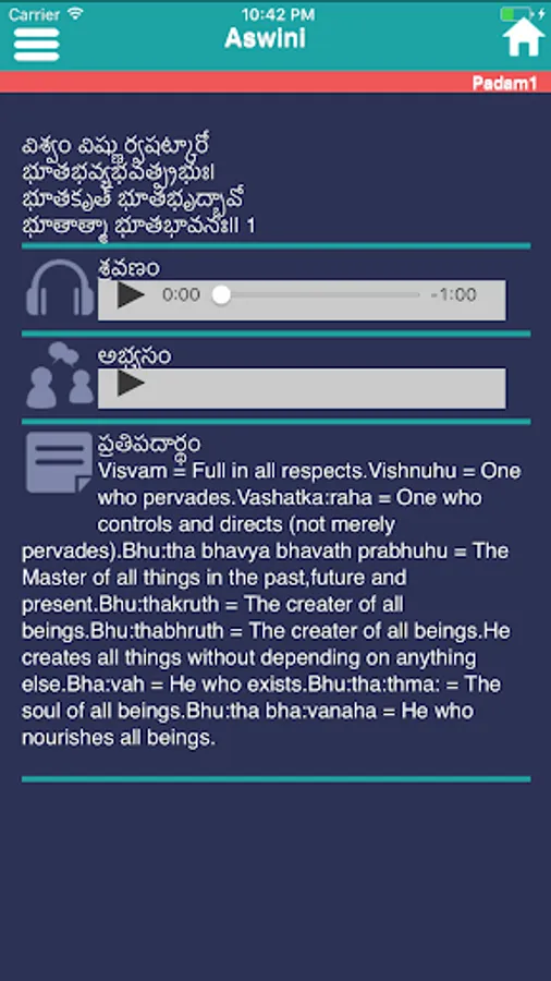 with the blessing and guidance of H. H. Tridandi Chinna Jeeyar Swamy, you can Listen, Learn, and Read "Sri Vishnu Sahasra Namas" the most convenient way on your mobile.