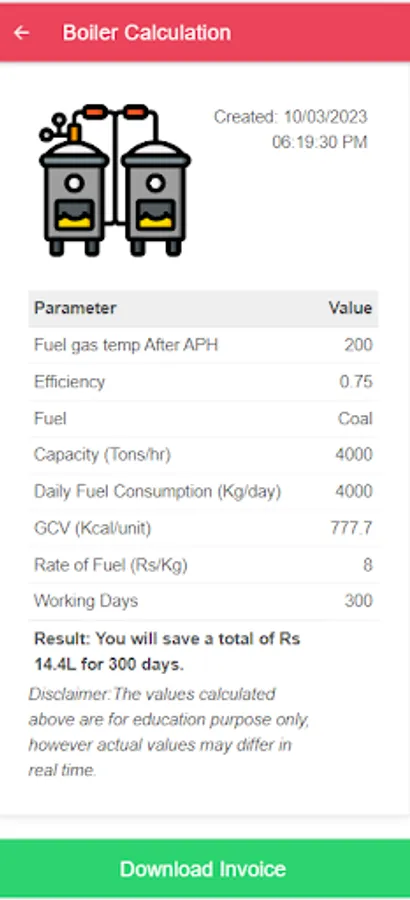 This App will save your cost by using some parameters.