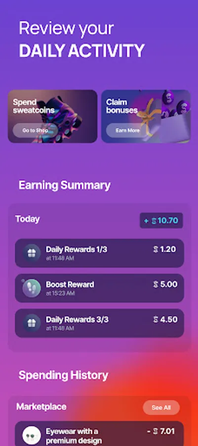 Download Sweatcoin so you can redeem offers for free thanks to our marketplace, filled with exclusive discounts and products.