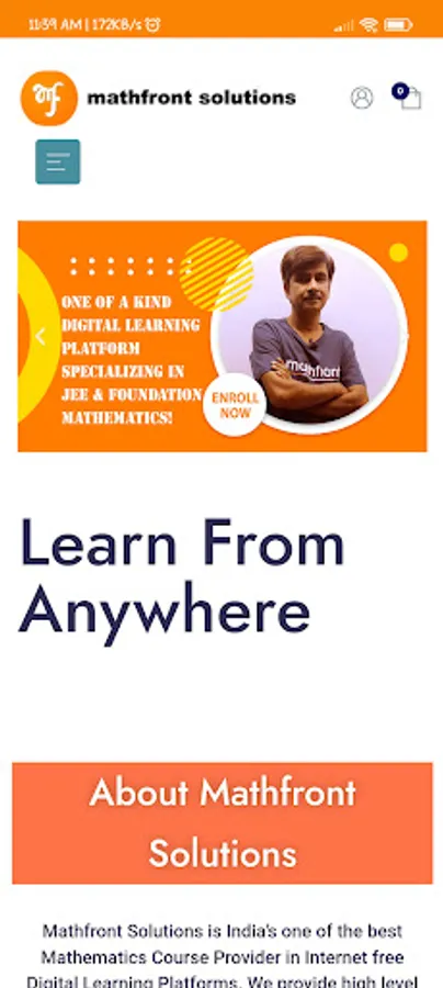 Mathfront Solutions is India’s one of the best Mathematics Course Provider in Internet free Digital Learning Platforms. We provide high level of comprehensive learning courses on Mathematics for competitive exams like JEE (Main), JEE(Adv), NDA, State level JEE, JEE Foundation.. etc. Coached by Anish Dhar Sir, co-founder of MATHFRONT Solutions. We use the latest in Digital Technologies to provide pre-recorded video lecture with digital study materials and online Exam System , so students can attend from anywhere, anytime.