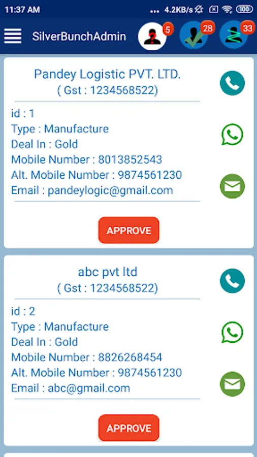 An exclusively developed interface for the person having the administrator rights to monitor and supervise the functionality of silver bunch app. This interface allows the administrator to ensure proper registration of the buyers and sellers with all the details duly filled. No offensive and messages with foul language are circulated and the communication goes on smoothly between the buyers and sellers. He will have control over the products which are being uploaded. He can notify the seller in case the picture quality is not up to the mark or the product description is not convincing enough. The administrator can even study the trends and accordingly promote a particular product and notify the customers registered on the app.