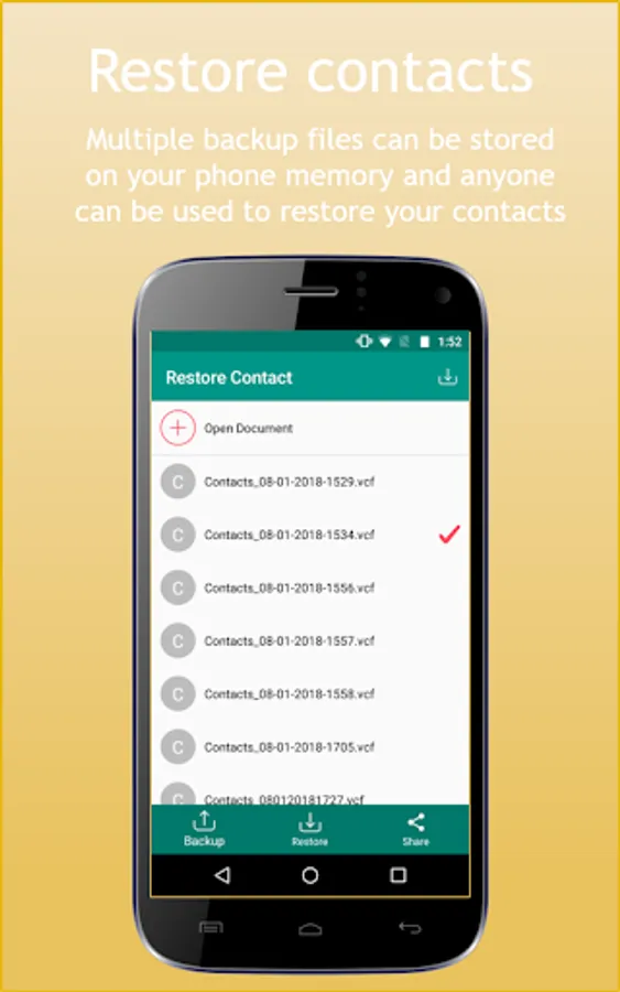 . Contacts backup and restore.