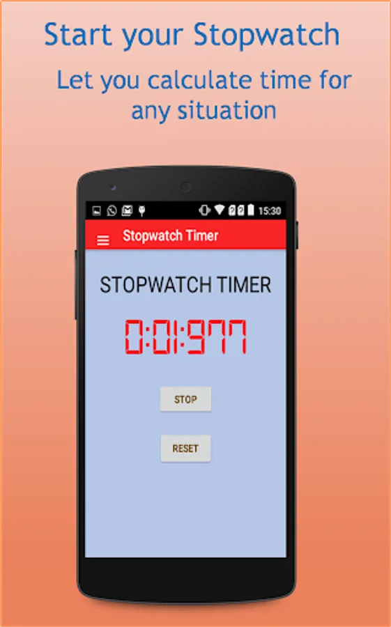 This app will help you to measure the time of any situation, like sports, cooking, games, education, etc. This free stopwatch has the functionality to start, stop and reset at your desire. Small in size, yet flexible for all phones, this stopwatch can be easily utilized. . Start and stop the stopwatch by simply pressing the button on the center