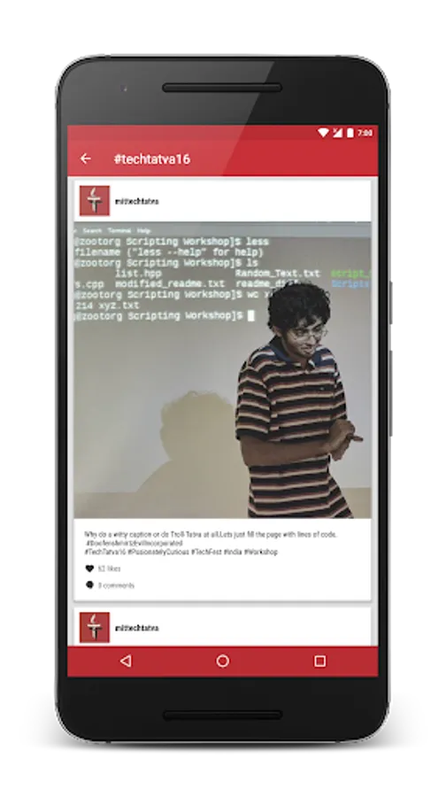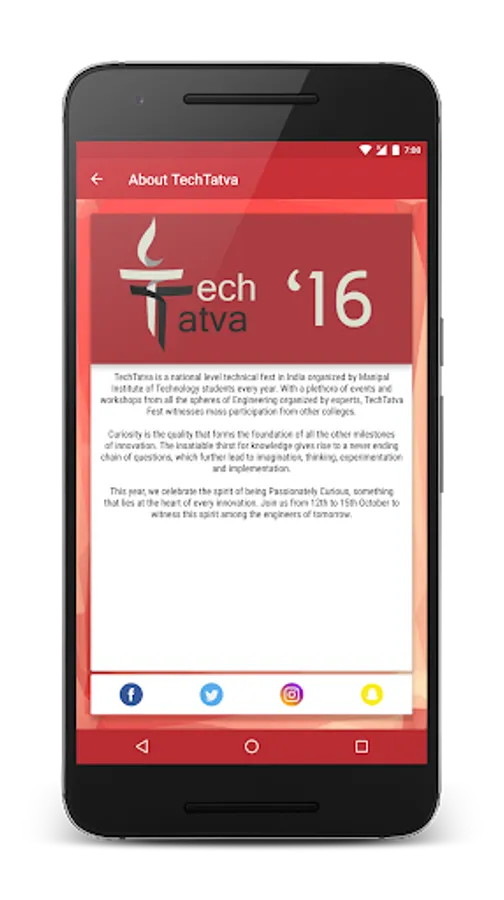 Click pictures, post it on Instagram with #techtatva16 to get your posts featured on the app. Everyone is requested to make good use of this feature, post pictures from different events from different parts of the campus to let everyone know what's going on.