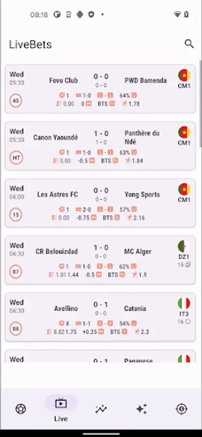• Live tips - in-play predictions