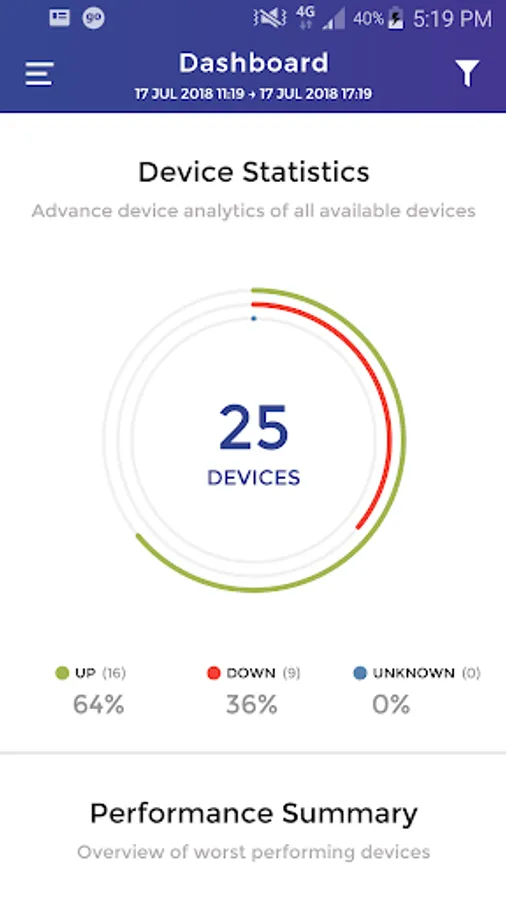 * Keep tabs on dashboard that contains Key Performance Indicators (KPI) for Device Statistics, Worst Performing Devices, Most Fluctuating Devices, Command Analysis and many more.