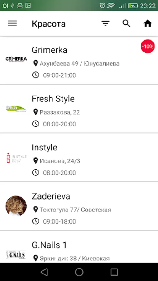 - View various salons and medical centers of Bishkek, compare them with each other.