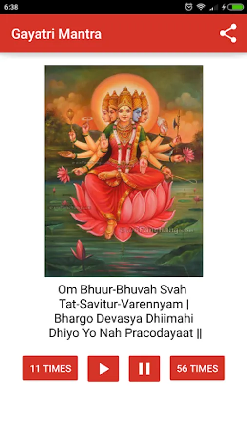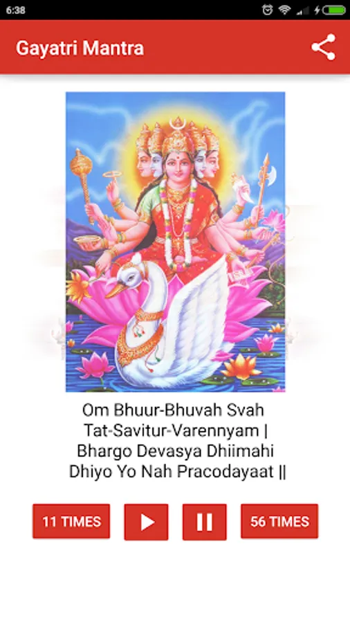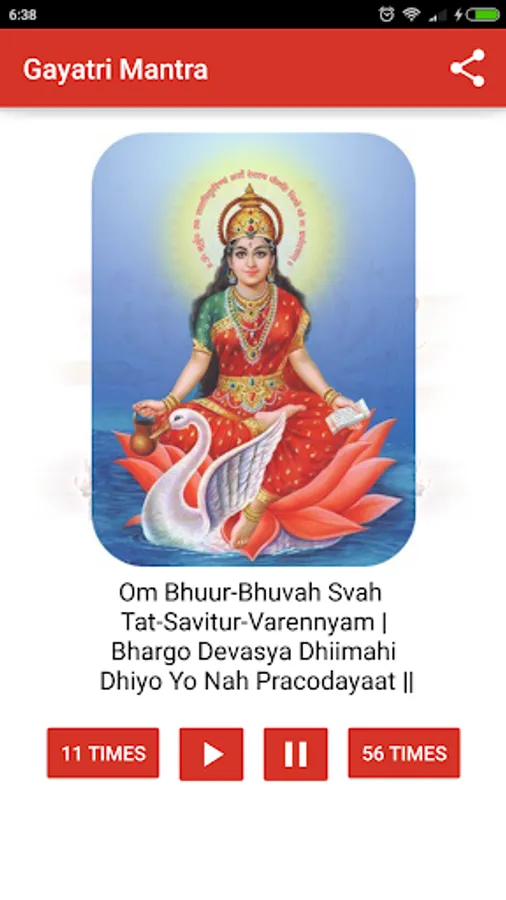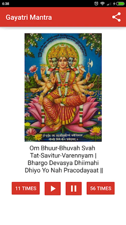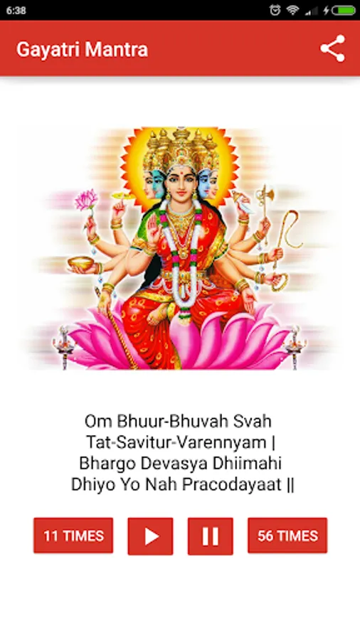 Gayatri Mantra 108 times audio free app lets you play Gayatri Mantra audio mp3 on loop for 108 times, 56 times or 11 times.