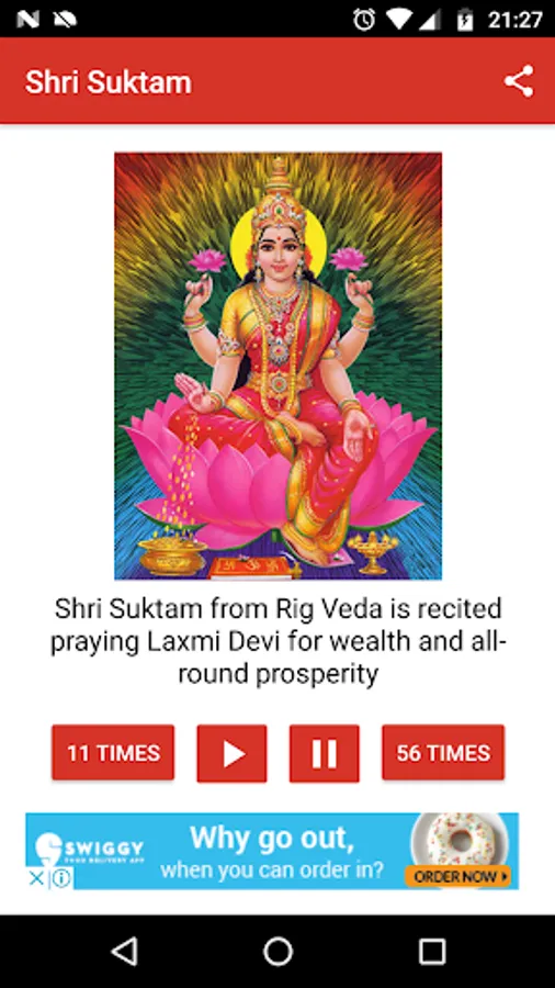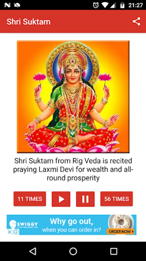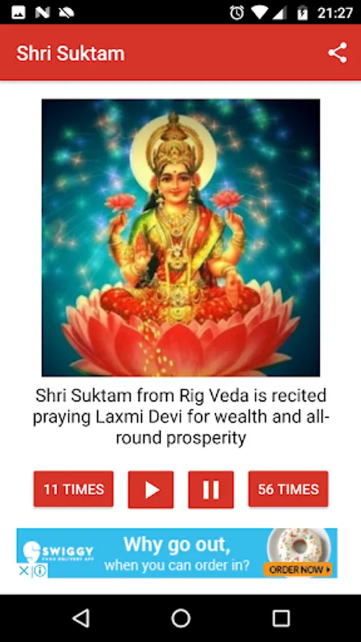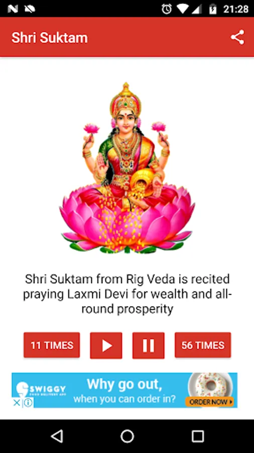 This app contains Shri Suktam praying the goddess Laxmi Devi mp3 audio.