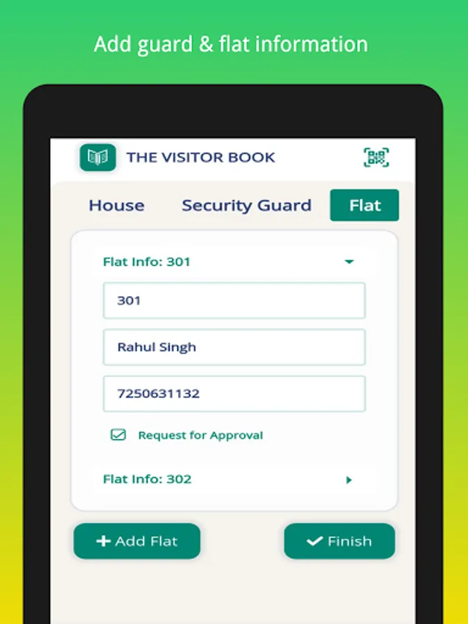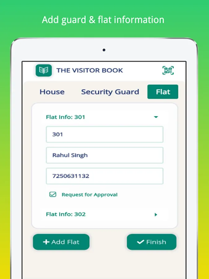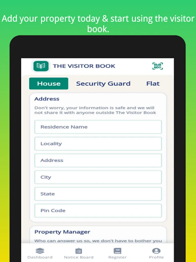 # A simple qr scan at the gate and the host gets notified instantly about the guest. The host can accept, reject or postpone the visit.
