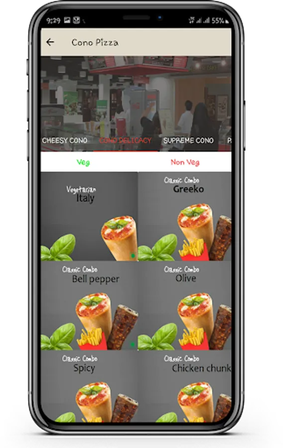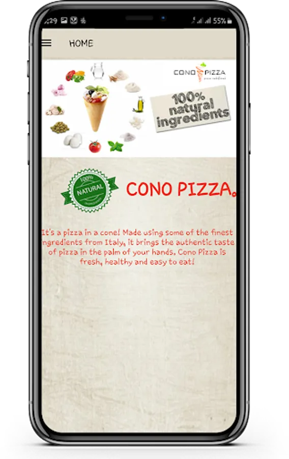 Cono Pizza is created with 100% natural ingredients. It is created like every authentic pizza from dough of water and flour that is kneaded and allowed to rise, after which it is made into magical cone. The abundant fillings of cheese, authentic Italian tomato sauce preparations, vegetables and non-vegetarian ingredients are truly natural. The high quality mozzarella cheese, the tomato sauces, and the cones are imported from Italy to maintain its quality.