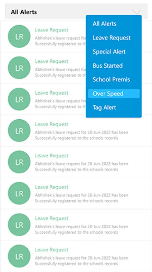 alights the bus. Parents can also request for a leave through the app and alert the school if the students