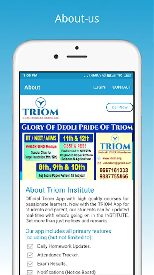 Official Triom App with high quality courses for passionate learners. Now with the TRIOM App for students and parent, our students can be updated real-time with what’s going on in the INSTITUTE. Get more than just notices and remarks.